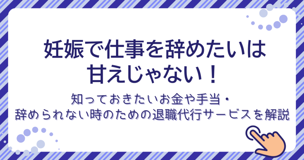 妊娠で仕事を辞めたいは甘えじゃない!知っておきたいお金や手当・辞められない時のための退職代行サービスを解説